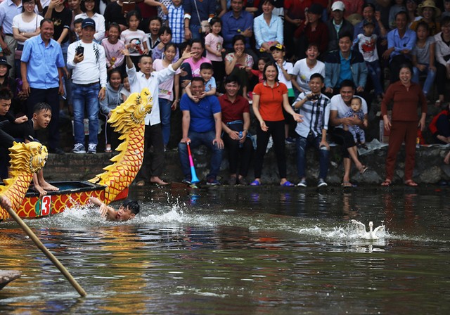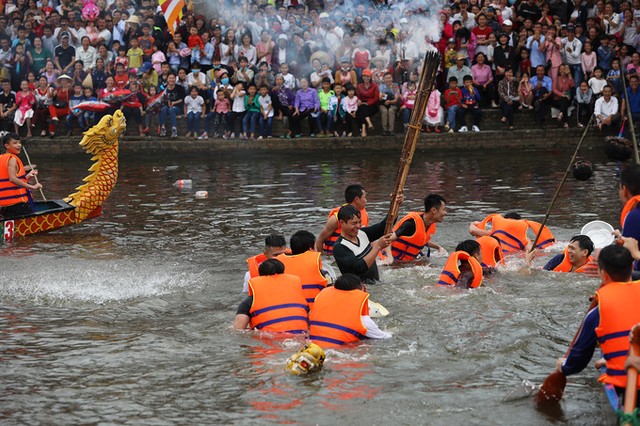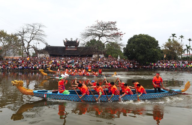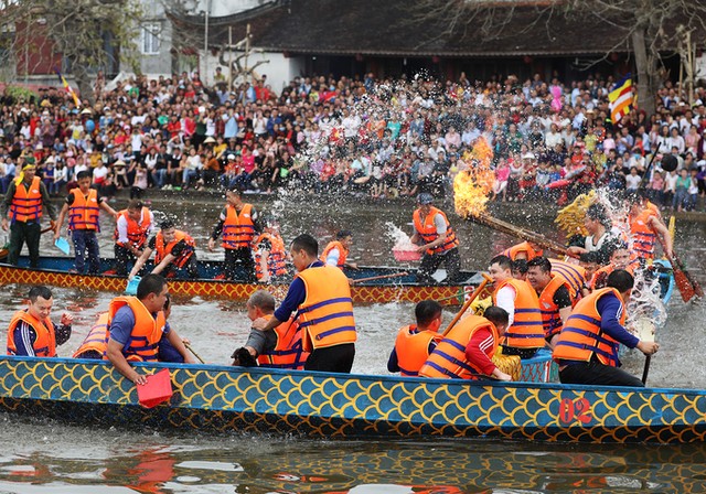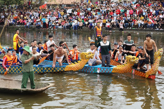 Năm thuyền của 5 thôn sẽ đua trên sông Cửa Chùa, chặng đua dài hơn một km để chọn ra 3 đội nhất tính theo thời gian. Đội nhất sẽ tham gia trò chơi tiếp theo.