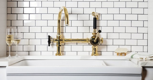 Tuỳ vào sự kết hợp giữa các sắc màu của tường, tủ bếp, bàn bếp, màu vàng ánh kim có thể trở thành lựa chọn cho các vật dụng nhỏ như vòi nước, tay cầm của các ngăn tủ, dây treo đèn bếp... Sắc vàng này có thể mang lại cho gian bếp một phong cách cổ điển, sang trọng và tinh tế.
