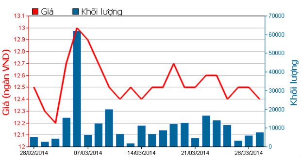 Trong tháng 3, cổ phiếu BHS có chút biến động trong tuần đầu nhưng sau đó đã giảm trở lại, giá dao động từ 12.200 – 13.000 đồng. Đóng cửa phiên 31/3, cổ phiếu BHS giảm nhẹ 100 đồng (-0,8%) xuống 12.400 đồng và khớp được 74.810 đơn vị, trong đó nhà đầu tư nước ngoài mua 20.120 đơn vị.
