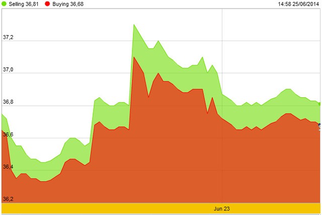 Các ngoại tệ khác hầu hết giảm, mạnh nhất là AUD với -0,67%; tiếp đến là GBP với -0,28%; CAD với -0,18%...