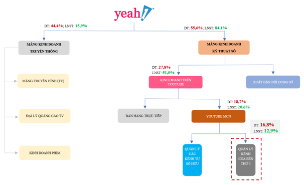 Theo Yeah1, YouTube MCN chỉ là một phần trong hoạt động kinh doanh kỹ thuật số của Tập đoàn. Trong năm 2018, lợi nhuận sau thuế của YouTube MCN đến từ việc quản lý các kênh YouTube của bên thứ ba (đối tác) chỉ đóng góp 12,9% tổng lợi nhuận sau thuế của Tập đoàn Yeah1.