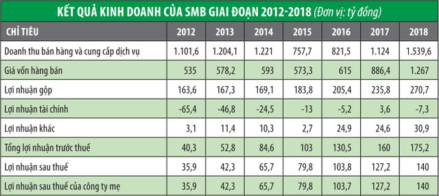Riêng năm 2018, dù thuế tiêu thụ đặc biệt với bia tăng 5% lên 65% đã ảnh hưởng khá mạnh tới ngành bia, trong đó có nhiều doanh nghiệp sụt giảm lợi nhuận như Bia Hà Nội - Thanh Hóa (THB), Hà Nội - Thái Bình (BTB), Hà Nội - Hải Dương (HAD)…, thậm chí có doanh nghiệp thua lỗ như Bia Hà Nội - Quảng Bình (BQB), nhưng SMB vẫn có tốc độ tăng trưởng lợi nhuận ở mức 2 con số.
