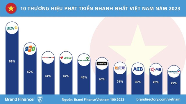 Nền kinh tế Việt Nam đã phải đối diện với một khởi đầu khó khăn nửa đầu năm 2023 khi xuất khẩu suy giảm và lãi suất toàn cầu tăng. Tuy nhiên các thương hiệu ngân hàng tại Việt Nam đã chứng tỏ khả năng phục hồi trước những thách thức kinh tế bằng cách triển khai số hóa và cải thiện dịch vụ khách hàng. Nhờ đó, các thương hiệu ngành Ngân hàng chiếm tới 30% tổng giá trị toàn ngành. Ở bảng xếp hạng sức mạnh thương hiệu, Brand Finance xác định sức mạnh tương đối của các thương hiệu thông qua thẻ điểm cân bằng gồm các số liệu đánh giá hoạt động đầu tư tiếp thị, vốn cổ đông và hiệu quả kinh doanh.