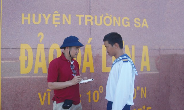 Phóng viên Báo Đầu tư tác nghiệp tại Trường Sa