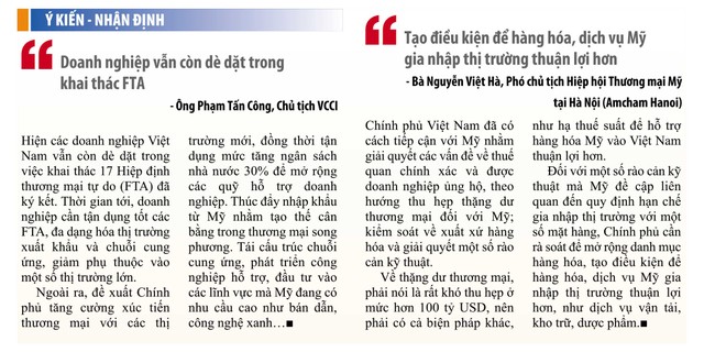 Nhiều ý kiến cho rằng, ở nhiệm kỳ đầu tiên của Tổng thống Donald Trump, thông điệp kéo giảm thặng dư thương mại đã được các chuyên gia cảnh báo tới các ngành hàng, doanh nghiệp xuất khẩu, nhưng sự thay đổi khá chậm. Bài toán cần lời giải cho giai đoạn tới là giữ được “miếng bánh” tại thị trường Mỹ cho những sản phẩm và hàng hóa có giá trị gia tăng cao của Việt Nam. Với những hàng hóa mà hàm lượng nội địa thấp, có giải pháp để giảm thiểu, tăng mua hàng hóa từ Mỹ, dần rút ngắn thặng dư thương mại, tiến tới quan hệ ngoại thương theo hướng cân bằng, bền vững.