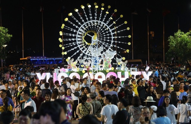 Lúc 20h, ban tổ chức bắt đầu mở cửa, hàng trăm người cùng ùa vào đường hoa.