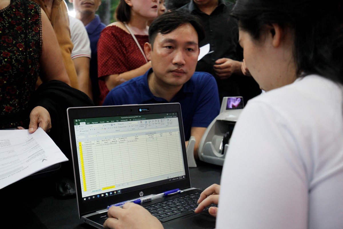 Nhiều người tự xếp thành hàng chờ đến lượt.