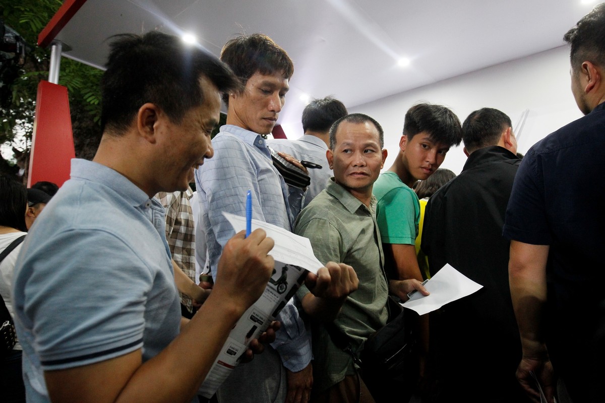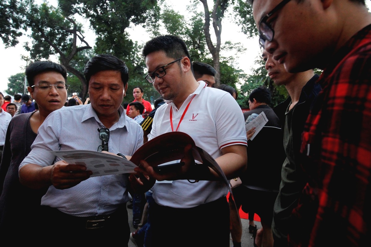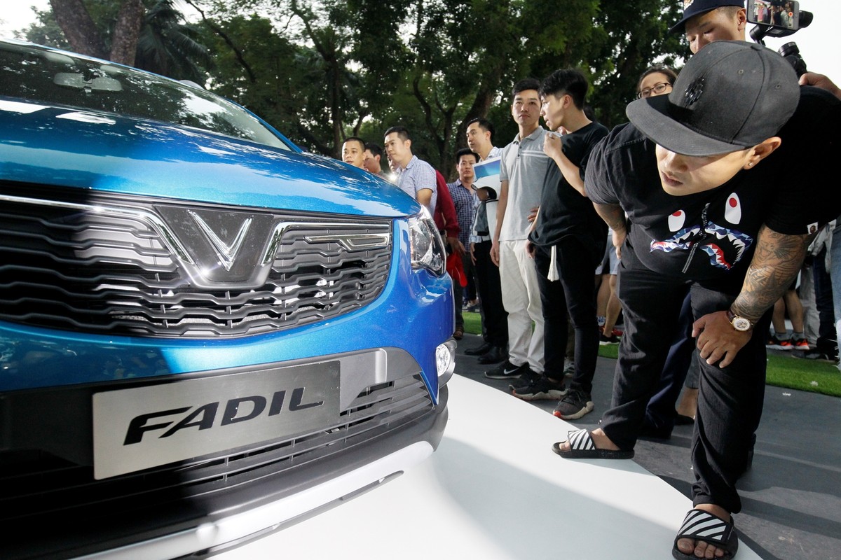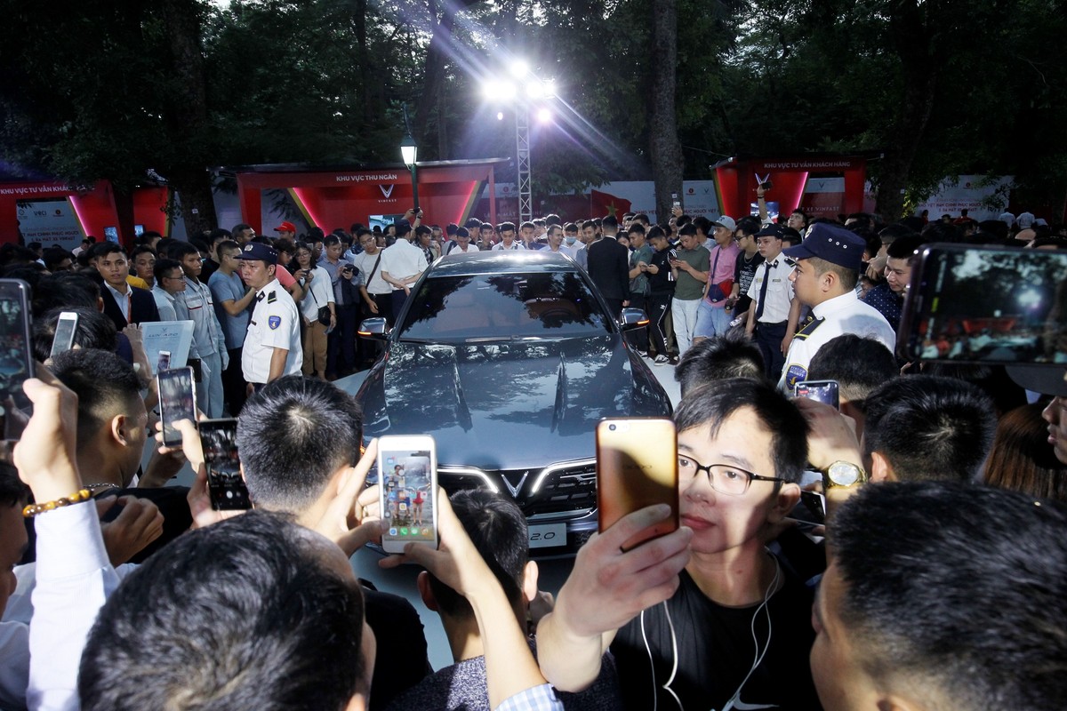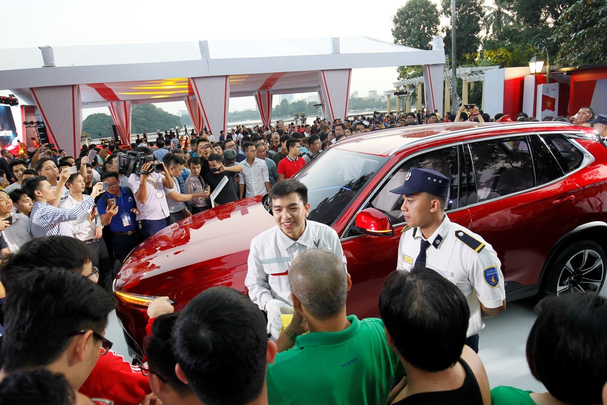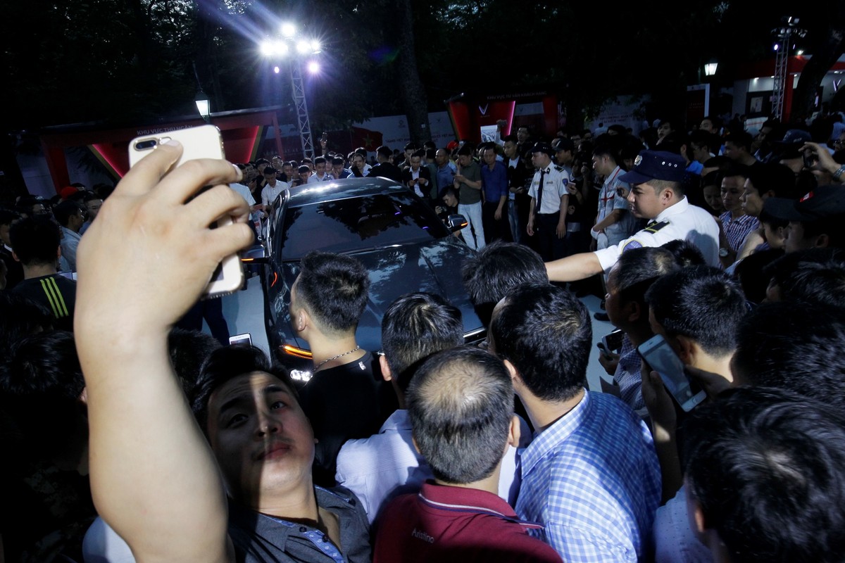Hàng nghìn người sau nhiều tiếng chờ đợi đã có thể thoải mái ngắm những chiếc xe nổi tiếng. Lần đầu tiên được ra mắt và thu hút rất nhiều sự quan tâm là chiếc xe cỡ nhỏ VinFast Fadil.