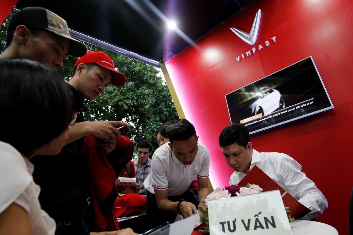 Khách hàng xin tờ khai đăng ký thông tin để mua xe Vinfast.