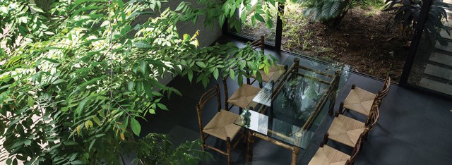 Các khu vực như phòng bếp, nhà tắm, cầu thang và hành lang được bố trí về phía tây để tránh bức xạ nhiệt. Bên cạnh đó, việc sắp xếp các khối nhà đa dạng duy trì được sự lưu thông không khí. Cũng nhờ vậy, khi các căn nhà xung quanh được xây dựng, không gian xanh trong nhà vẫn có thể được duy trì. Bên cạnh đó, lối thiết kế này giúp căn nhà luôn mát mẻ ngay cả trong khí hậu nhiệt đới. Rất ít khi phải sử dụng hệ thống điều hòa.