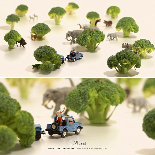 Bộ ảnh lịch năm mới dưới đây được thực hiện bởi nghệ sĩ người Nhật Tatsuya Tanaka. Từng khuôn hình mà nghệ sĩ Tanaka thực hiện đều theo phong cách mô hình tí hon, ngộ nghĩnh, hài hước, khiến người xem càng quan sát kỹ càng thấy thích thú.
