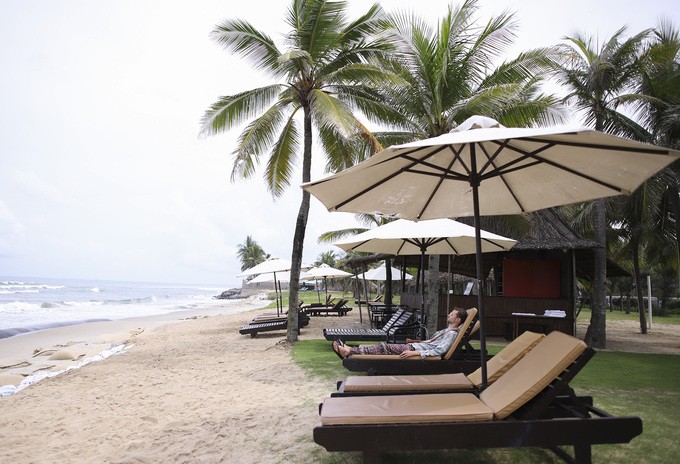 Do biển sạt lở, lượng khách tại Cửa Đại hiện thưa vắng. Tại một khu nghỉ dưỡng ven biển trưa 20/10 chỉ có duy nhất một vị khách nước ngoài tìm đến nằm thư giãn.