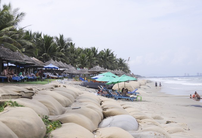 Thành phố Hội An đang sửa chữa lại tuyến bờ kè bằng bê tông cốt thép. "Còn một số đoạn ven biển có nguy cơ sạt lở rất lớn nếu có bão", ông Sỹ nói.