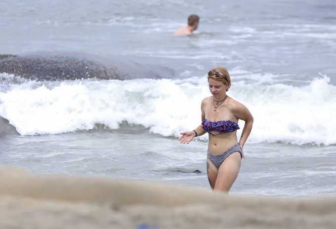Các em nhỏ tắm ở ngay sát bờ cũng không ở dưới nước được lâu vì sóng lớn.