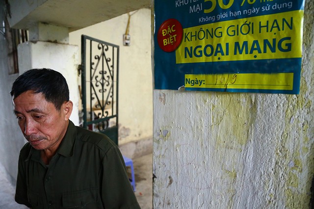 Ông Doãn Văn Ngọc đứng trước khu bếp "dột trên hở dưới" mà không thể cải tạo sửa chữa của nhà mình