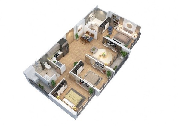 Phối cảnh 3D căn hộ 3 phòng ngủ đẹp lung linh tại Dự án Eco-Green Saigon