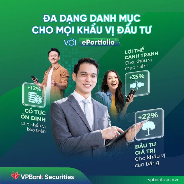 Bên cạnh đó, khi nhu cầu đầu tư thụ động thông qua một tổ chức chuyên nghiệp ngày càng gia tăng, VPBankS phát triển thêm sản phẩm mới như ePortfolio. Các danh mục tài khoản mẫu được những chuyên gia giàu kinh nghiệm của công ty xây dựng đã có hiệu suất vượt trội so với thị trường chung và ngày càng thu hút sự quan tâm.