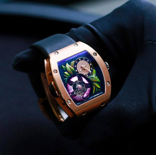 Toàn bộ các cánh hoa được tạc thủ công trên vàng bởi những nghệ nhân bậc thầy, sau đó tiếp tục được hoàn thiện bởi những hoạ sĩ tài năng và không bông nào giống bông nào. Mỗi bông hoa của RM 19-02 đều là độc bản.