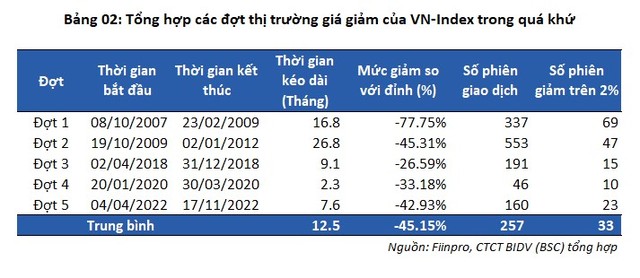 "Thời gian xác lập đáy của một thị trường giá giảm đang co hẹp lại tuy nhiên mức độ sụt giảm và số phiên VN-Index giảm hơn 2% lại có xu hướng gia tăng", báo cáo BSC nhận định.
