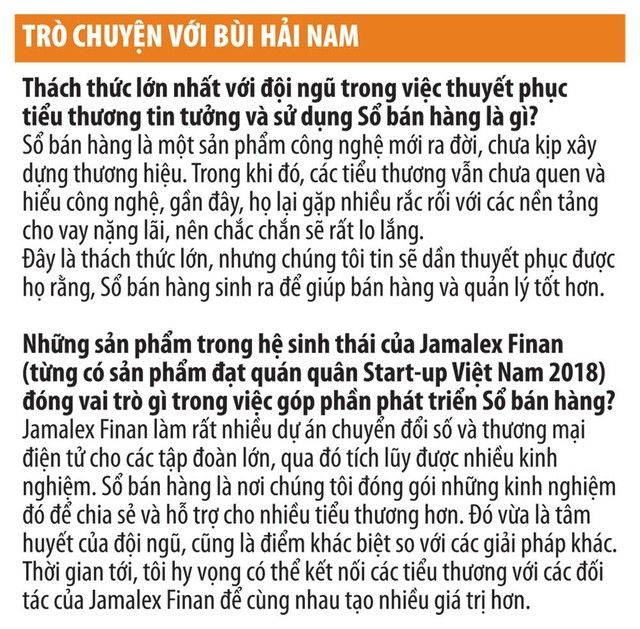 Bùi Hải Nam, đồng sáng lập Sổ bán hàng (SoBanHang) cho biết, các thành viên sáng lập của Jamalex Finan (đơn vị sở hữu SoBanHang) đều trăn trở, mong muốn xây dựng giải pháp công nghệ để hỗ trợ tiểu thương - những người đang bị bỏ lại trong làn sóng chuyển đổi số và bán lẻ hiện đại.