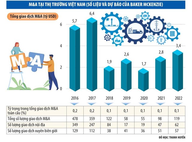 Theo số liệu thống kê, trong 20 năm qua, Việt Nam có 4.000 thương vụ M&A, với gần 50 tỷ USD, đứng thứ 3 Đông Nam Á về giá trị. Việt Nam là quốc gia năng động trong hoạt động M&A.