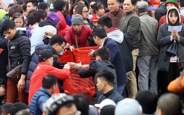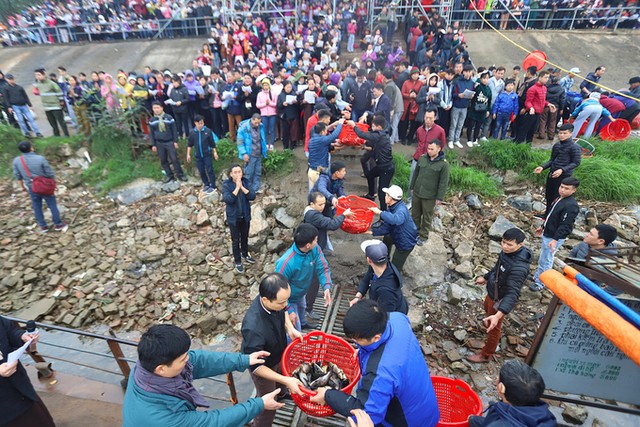 Mỗi giỏ cá thả xuống sông Hồng trong Lễ phóng sinh lớn nhất Hà Nội đều được nhận những lời chú nguyện.