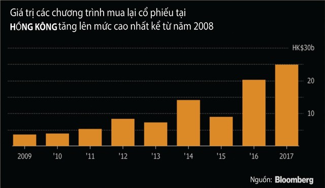 Tony Chu, Giám đốc Quỹ Victory Capital Management Inc cho biết, kể từ đầu năm tới nay, chỉ số Hang Seng đã tăng 23%, trong đó, cổ phiếu của 3 công ty tiến hành mua lại cổ phiếu đã đóng góp một nửa mức tăng. Điều này đã cổ vũ cho nhiều doanh nghiệp khác thực hiện chiến lược này.