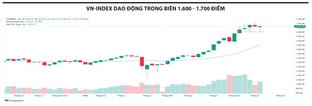 Thanh khoản toàn thị trường vẫn ở mức thấp, phản ánh tâm lý nhà đầu tư còn dè dặt, đồng thời cho thấy các nhịp rung lắc có thể tái diễn. Dẫu vậy, phản ứng tích cực của nhóm cổ phiếu trụ khi chỉ số lùi về vùng hỗ trợ cho thấy triển vọng hồi phục lên mốc tâm lý 1.700 điểm trong tuần này vẫn khả thi. VN-Index nhiều khả năng dao động trong vùng 1.600 - 1.700 điểm, nơi cả ngưỡng trên và dưới tiếp tục được kiểm chứng.