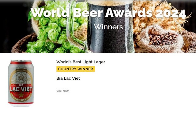 Ngoài ra, Bia Lạc Việt cũng được trao danh hiệu bia nhẹ ngon nhất thế giới (World’s Best Lager Light), công nhận đây là loại bia ngon nhất thế giới với nồng độ cồn 2,6-4,5%.
