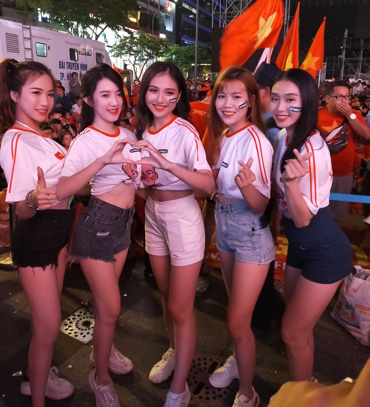 Các cô gái vận áo thương hiệu Tiger tạo dáng trước ống kính máy ảnh.