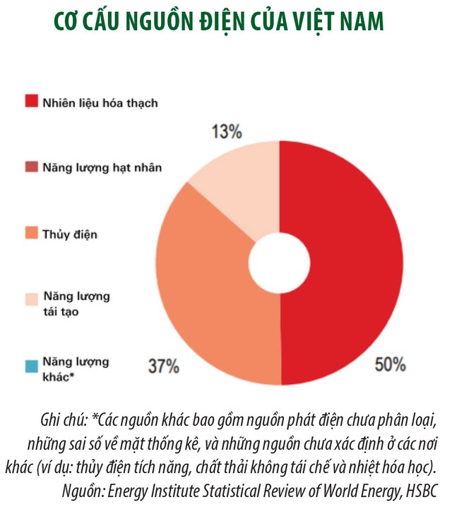 Ngoại trừ Việt Nam, mọi nền kinh tế trong khu vực đều dựa vào nhiên liệu hóa thạch để sản xuất phần lớn điện năng. Tuy nhiên, hơn 1/3 lượng điện của Việt Nam là từ thủy điện, nguồn điện mà một số chuyên gia cho rằng không đủ sạch để được coi là năng lượng tái tạo.