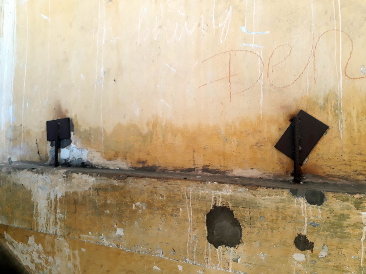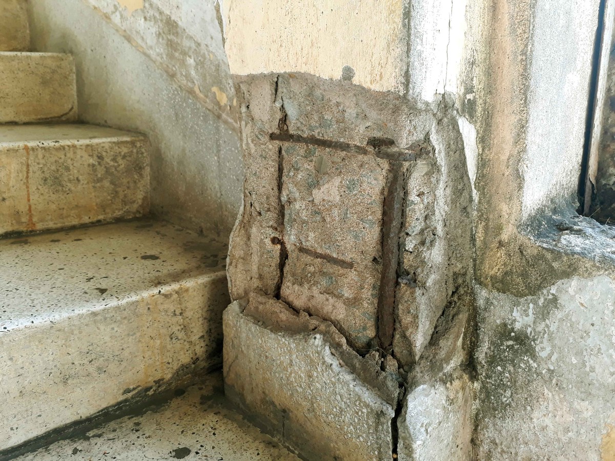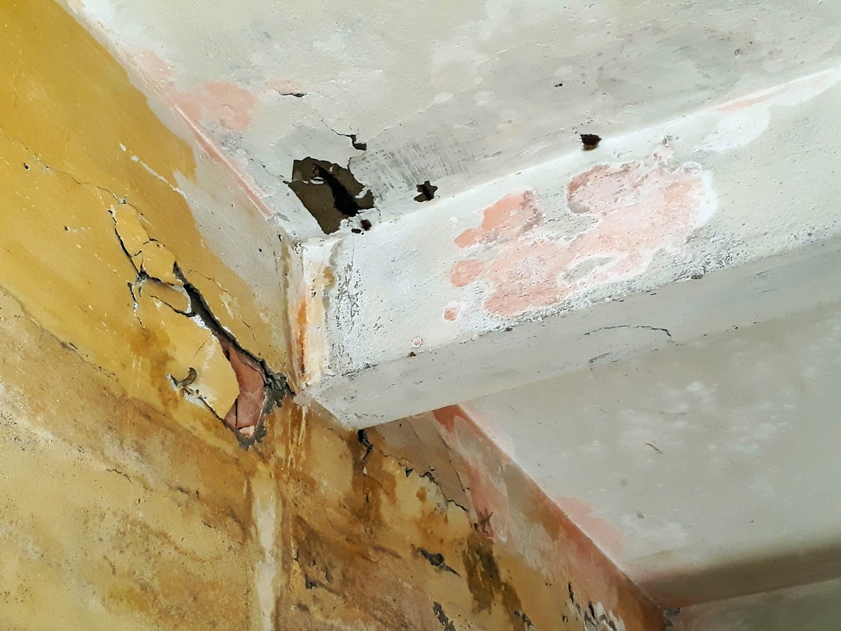 Những mảng vữa ở trên tường có thể rơi xuống bất cứ lúc nào.