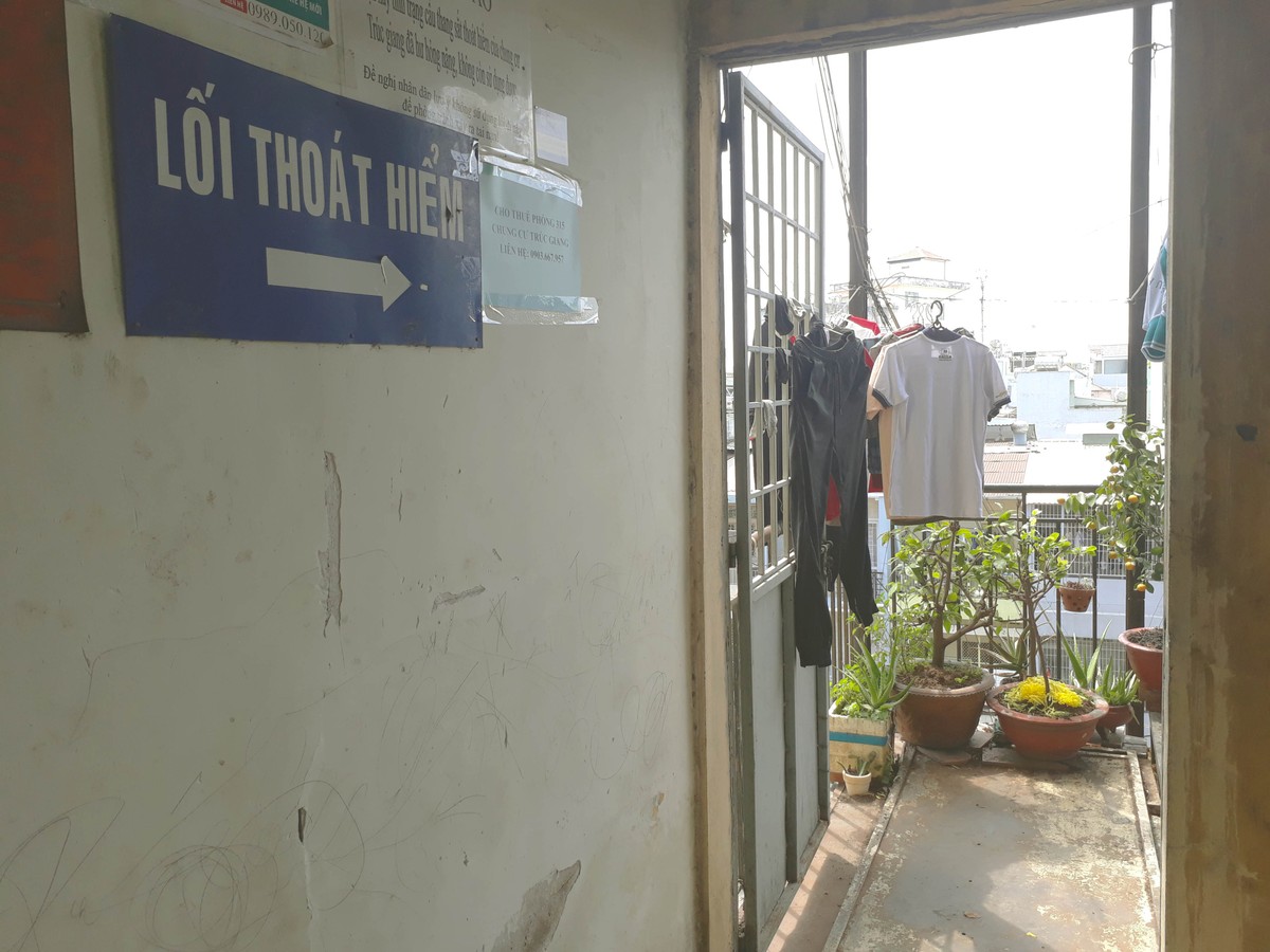 Lối thoát hiểm được tận dụng để làm chỗ phơi đồ và để cây cảnh.