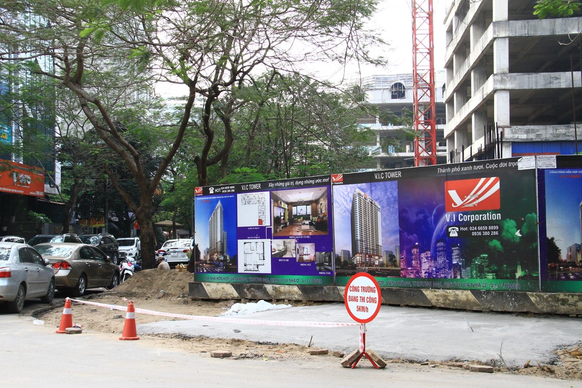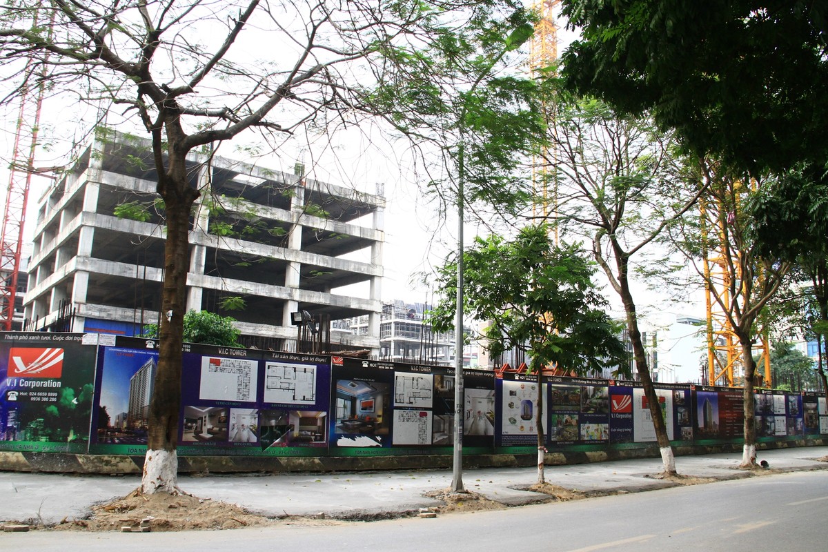 Theo những quảng cáo mới nhất, dự án hiện có tên gọi là Tòa nhà hỗn hợp: văn phòng, thương mại, dịch vụ và nhà ở - V.I.C Tower . Ảnh: Thành Nguyễn.