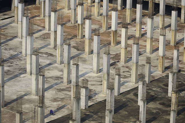 Cỏ hoang được dịp trèo leo thoải mái lên dự án bỏ hoang