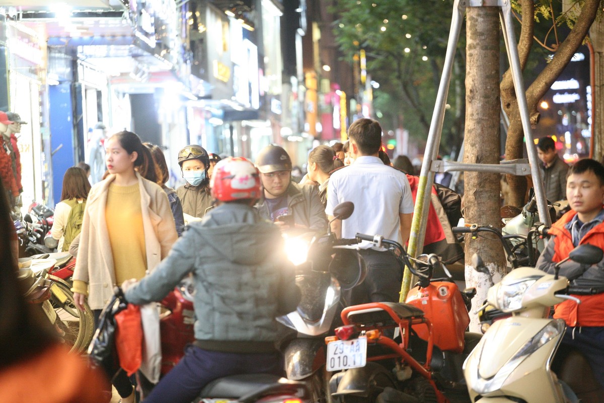 Tại các tuyến phố trung tâm, vào thời điểm tối muộn tình trạng tắc đường cũng vẫn thường xuyên diễn ra. Phố Chùa Bộc tối 31/1, nhiều xe phải lao lên vỉa hè cướp đường của người đi bộ để thoát khỏi.