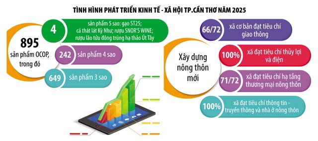 Cùng với đó, Chương trình Mục tiêu quốc gia xây dựng nông thôn mới cũng đạt kết quả tích cực. TP. Cần Thơ hiện có 59/72 xã đạt chuẩn nông thôn mới, trong đó có 15 xã đạt chuẩn nông thôn mới nâng cao và 2 xã đạt chuẩn nông thôn mới kiểu mẫu (xã Trường Long và xã Thới Hưng).