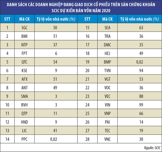 Năm 2020, SCIC dự kiến thoái vốn tại 85 doanh nghiệp, trong đó có 28 doanh nghiệp đang giao dịch cổ phiếu trên sàn chứng khoán.