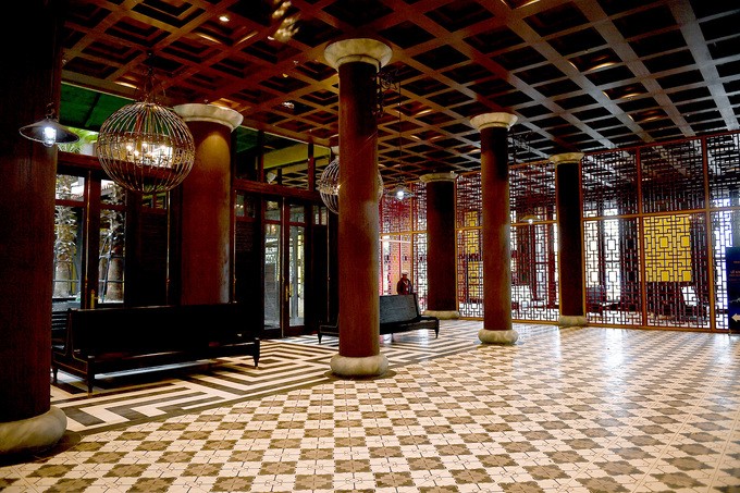 Bên trong lại giống tầng hầm của con tàu biển thế kỷ 13 với hệ thống cột gỗ, trần gỗ và trần thép, nội thất cầu kỳ.