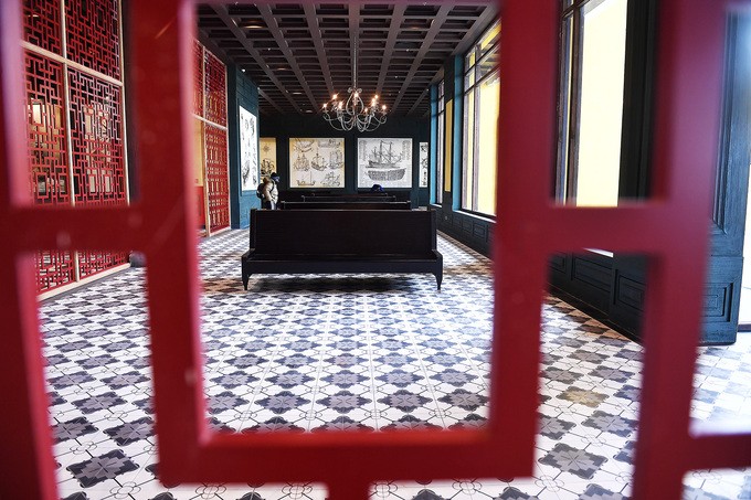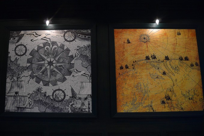 Riêng tường nhà ga được thiết kế với 27 khung tranh thể hiện hải đồ và tàu biển cổ.
