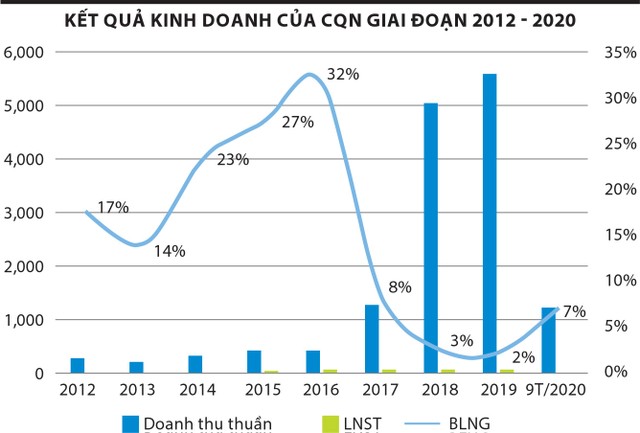 Tuy nhiên, 9 tháng đầu năm 2020, CQN đạt doanh thu 1.433 tỷ đồng, giảm 65%; lợi nhuận sau thuế gần 43 tỷ đồng, giảm 10% so với cùng kỳ năm ngoái.