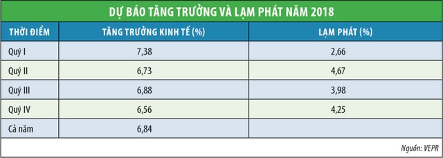 Theo Báo cáo Kinh tế vĩ mô Việt Nam quý III/2018 do Viện Nghiên cứu kinh tế và chính sách thuộc Trường Kinh tế, Đại học Quốc gia Hà Nội (VEPR) vừa công bố, với mức tăng trưởng tích cực 6,88% của GDP quý III, mục tiêu tăng trưởng 6,5-6,7% của GDP cả năm 2018 do Quốc hội đề ra gần như sẽ hoàn thành.