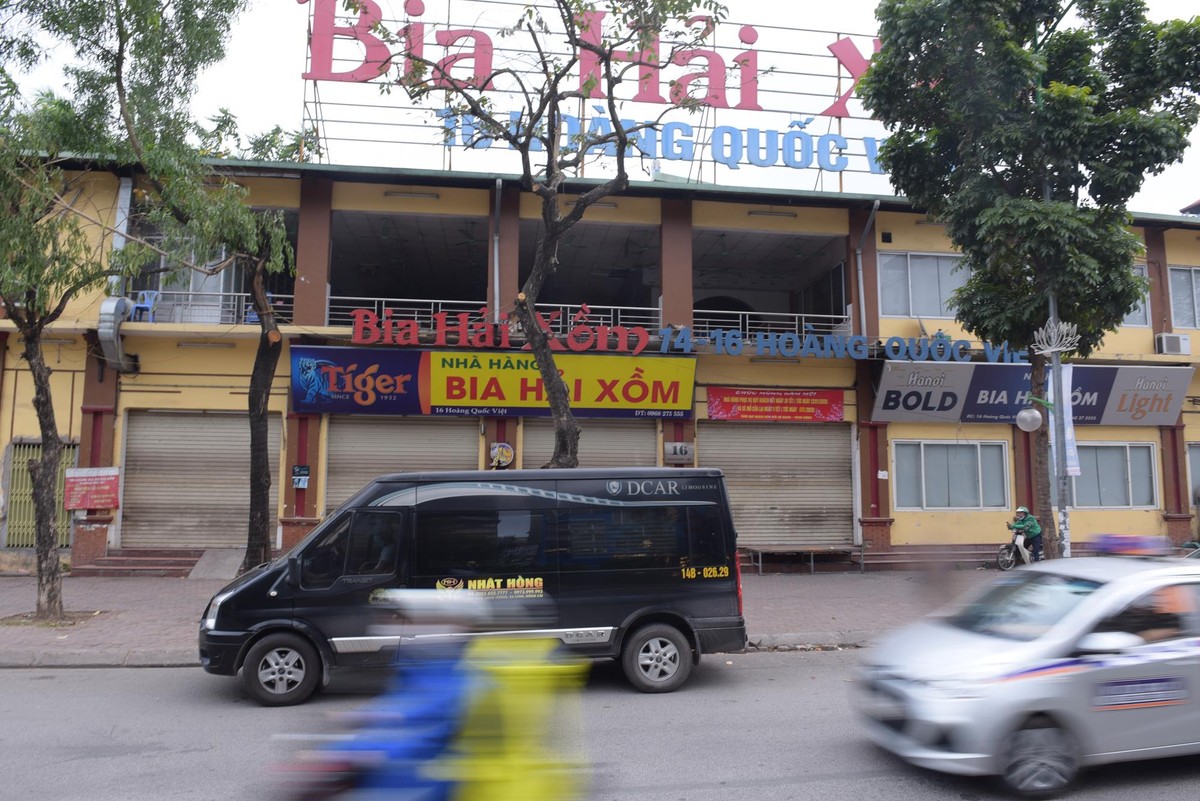 Theo ghi nhận của phóng viên, một số hệ thống quán bia hơi lớn ở Hà Nội như Hải Xồm đang tạm đóng cửa một số cơ sở. Cửa hàng trên phố Hoàng Quốc Việt đóng cửa trở thành điểm đỗ xe lý tưởng.