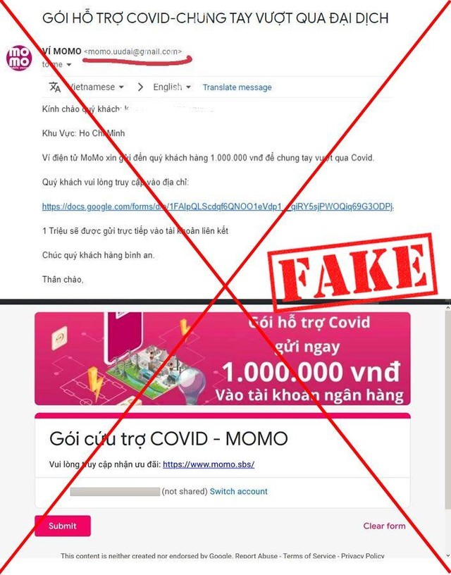 Những ngày gần đây, nhiều người, trong đó có người dùng Ví MoMo nhận được email về “Gói cứu trợ Covid - Chung tay vượt qua đại dịch”.