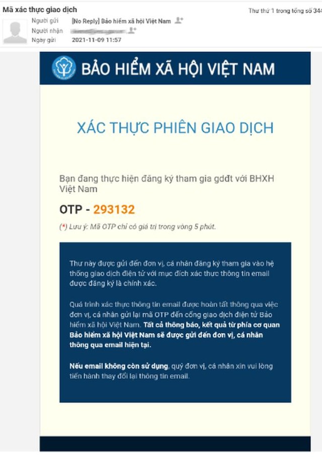 Trường hợp cá nhân chưa có thông tin email khi đăng ký giao dịch điện tử, có thể bổ sung thông tin email cá nhân để nhận thông báo, mã xác thực (OTP) khi thực hiện các giao dịch với cơ quan BHXH tại chức năng “Thông tin tài khoản” trên Cổng Dịch vụ công của BHXH Việt Nam.