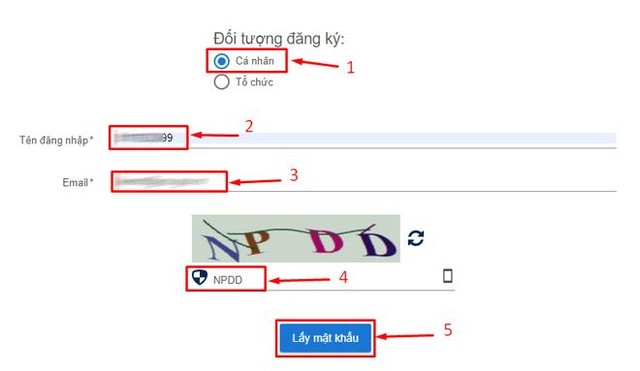 Bước 4: Nhập mã số BHXH và địa chỉ email đã đăng ký với cơ quan BHXH, nhập mã Capcha. Chọn: “Lấy mật khẩu”, hệ thống sẽ gửi mã xác thực về email.