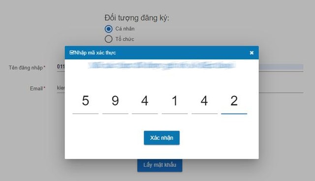 Bước 5: Thực hiện “Nhập mã OTP” để xác nhận thông tin. Hệ thống sẽ gửi thông tin tài khoản và mật khẩu vào địa chỉ email đã đăng ký.