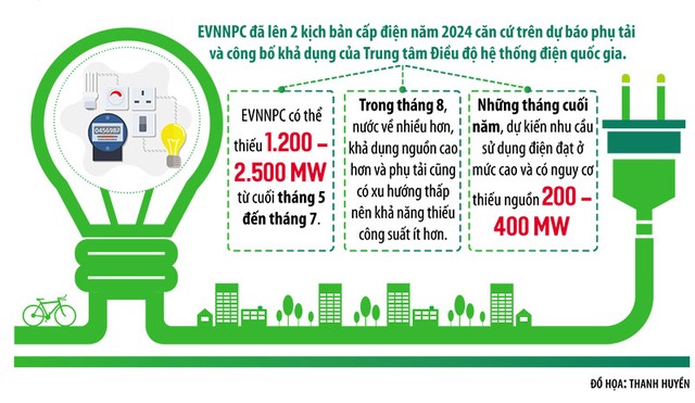 Chia sẻ tại Hội nghị triển khai công tác năm 2024 của Tập đoàn Điện lực Việt Nam (EVN), ông Nguyễn Đức Thiện, Tổng giám đốc Tổng công ty Điện lực miền Bắc (EVNNPC) cho biết, với phương án phụ tải điện dự báo, nguy cơ năm 2024, miền Bắc có thể thiếu 1.200 - 2.500 MW, đặc biệt là giai đoạn hè từ tháng 5 đến tháng 7.