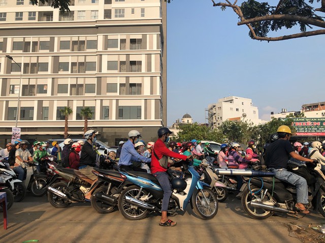 Dòng xe xếp hàng dài bắt đầu từ hướng đường Nguyễn Hữu Thọ (quận 7)
