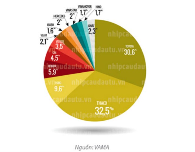 Ý kiến của một vị lãnh đạo VAMA cho biết, sở dĩ thị phần của Thaco lớn nhất là do doanh nghiệp này đã và đang triển khai chiến lược đa dạng hóa các dòng ôtô du lịch, bán tải và tải cùng việc tối ưu hóa công nghệ nên không bị ảnh hưởng lớn bởi sự cạnh tranh quyết liệt với các hãng ôtô liên doanh lớn như Toyota, Honda và Ford tại Việt Nam.